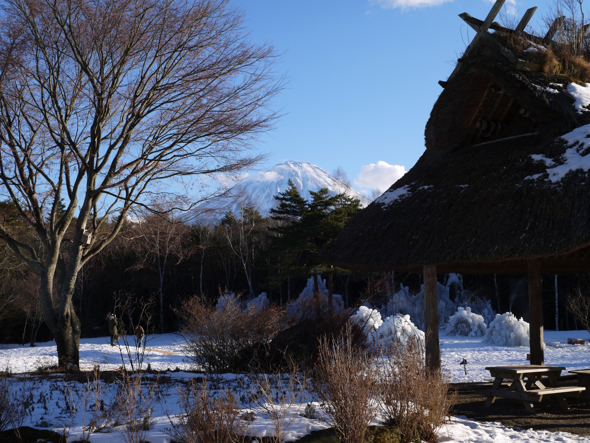 それほど大きな富士山を見ることはできませんが、冬季に開催される西湖樹氷まつりの際に富士山を撮影するといいのではないでしょうか。