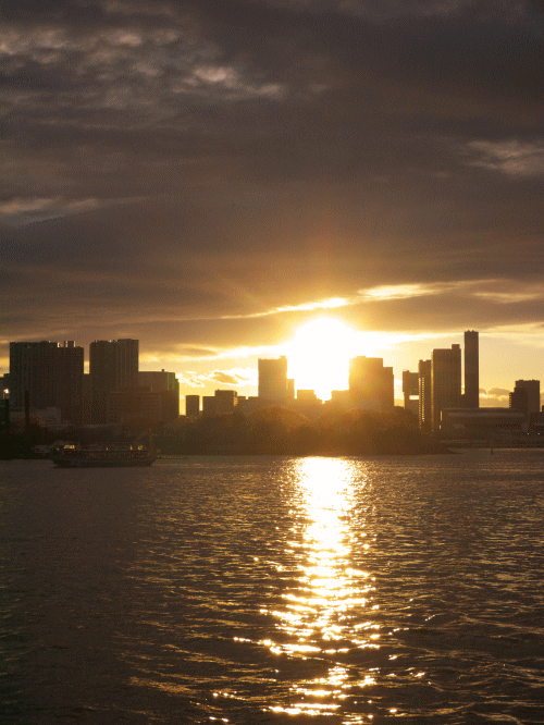 お台場に着いたら、ちょうど夕暮れ時で、夕日を撮影できました。