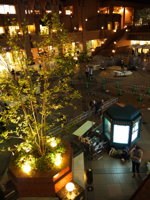 昼間、センター広場でイベントが催されたようで、その後片付けがされていました。